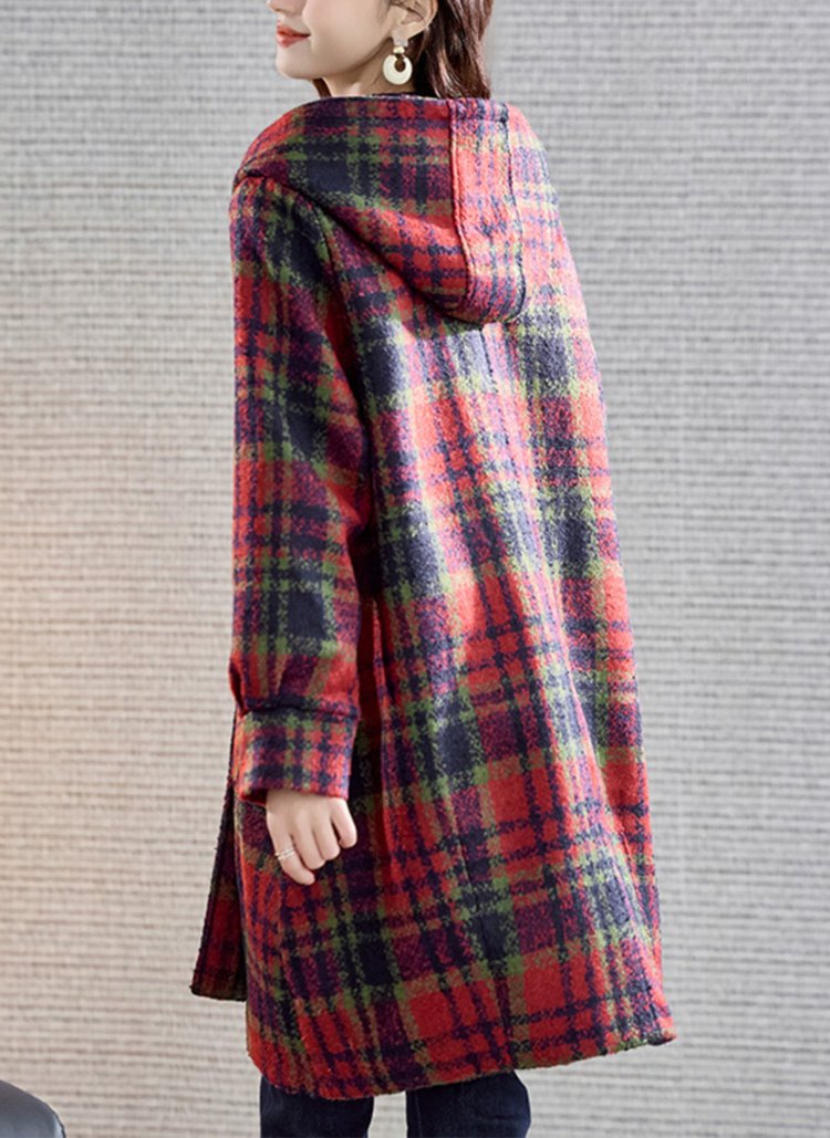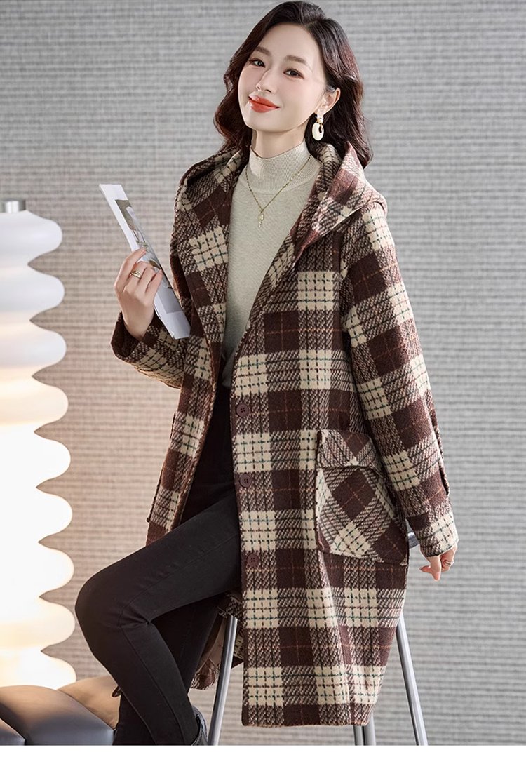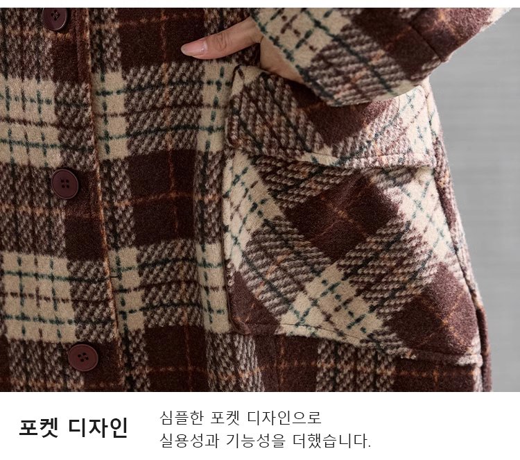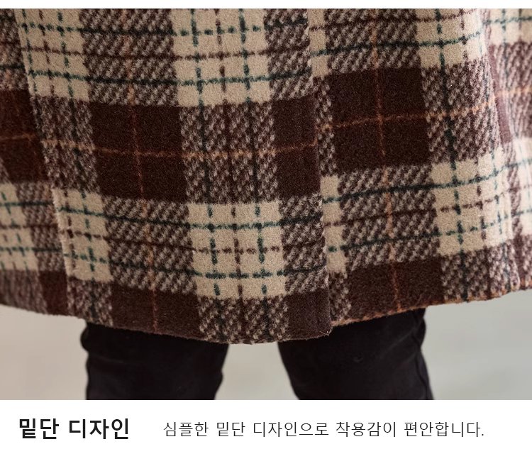 [날씬해 보임] 캐주얼 체크무늬 여성용 모직 코트